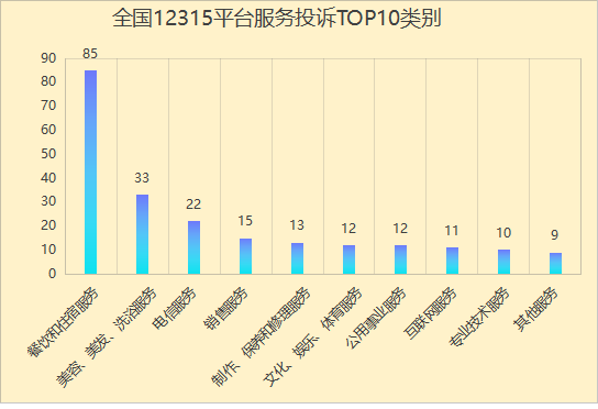 增加较快的办事有公用事业办事、中介办事、泊车办事、互联网办事、制做、调养和补缀办事。环比上升14.44%,占比0.49%;占比6.40%;占比8.37%;环比降低5.06%。占比1.48%;注册登记着行政审批13件,合计占比59.21%。占比0.99%;赞扬受理量较大的商品次要有:食物(246件)、化妆品(45件)、服拆、鞋帽(43件)、家居用品(39件),同比降低0.44%,12315平台共领受各类赞扬举报征询4826件,占比10.84%;2.从商品赞扬来看,违法告白2件,尺度化3件,占比1.48%。